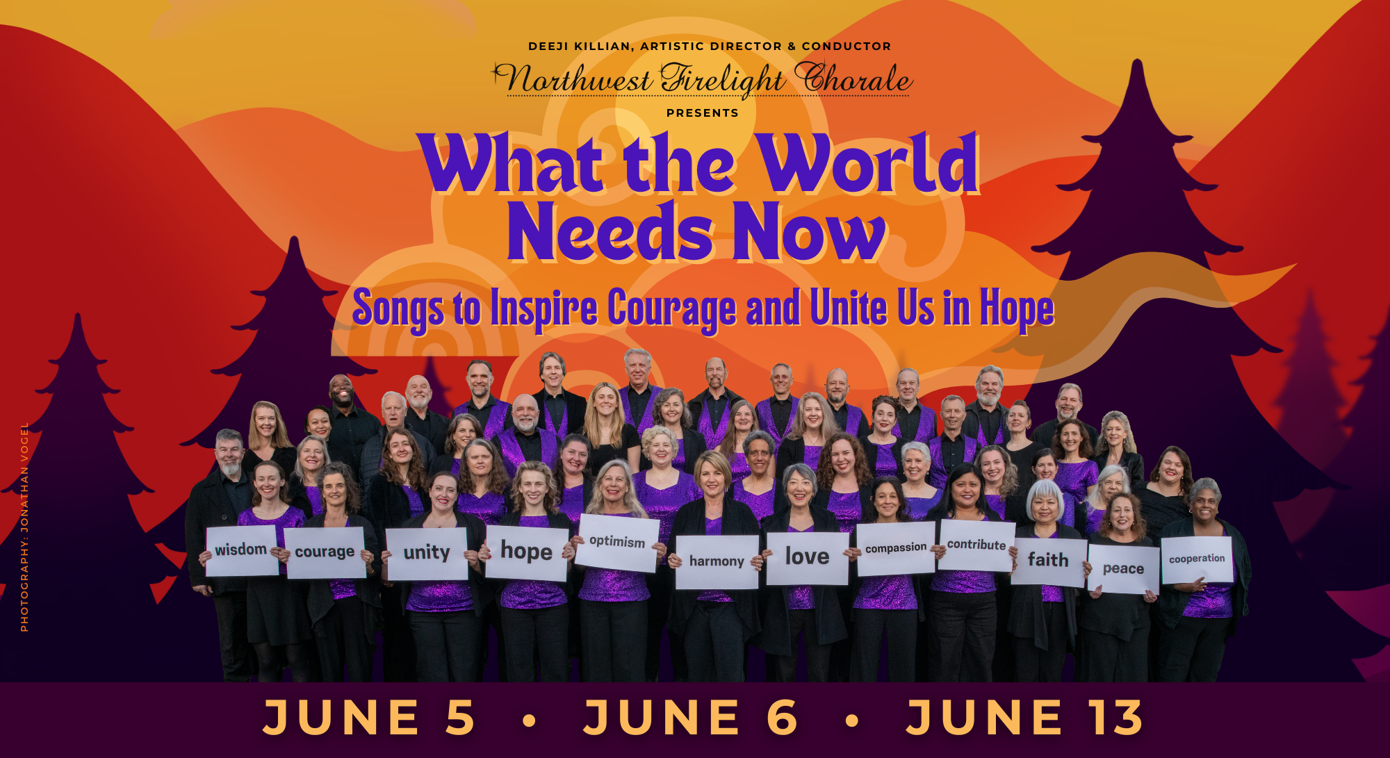 In times of uncertainty, a single spark can ignite courage and hope. The Northwest Firelight Chorale invites you to gather in that light to find both strength, and peace. This program draws on songs of compassion and resilience, featuring beloved pieces like "People Get Ready," "A Change Is Gonna Come," "The Times They Are A-Changin'," "Lean on Me," and more. As we raise our voices in harmony and resolve, the lasting truth emerges: even during darkness and disorder, a steady and unifying love endures that is impossible to silence.